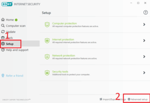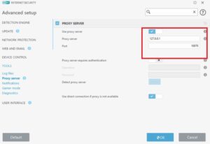 پس از وصل شدن فیلتر شکن نرم افزار آنتی ویروس خود را باز کنید. قسمت Advanced setup را انتخاب یا دکمه میانبر F5 را یزنید و سپس وارد بخش Tools و پس از آن وارد بخش Proxy Server شوید