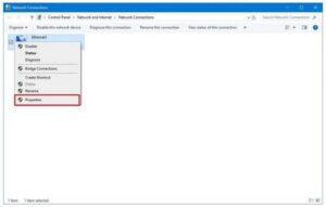 گزینه Internet Protocol Version 4 (TCP/IPv4) را فعال کنید و دکمه Properties را کلیک کنید.